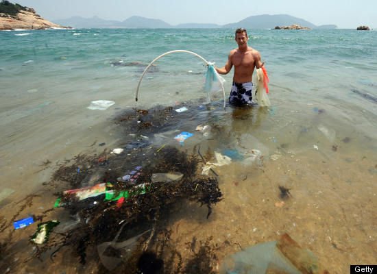 這是明顯易見的問題。真是令人驚訝這些垃圾是如何倒進大海的。海洋生物很容易被人類的垃圾纏住或困住,美麗的珊瑚與海綿也會被摧毀。更甚者,塑膠袋會被海龜或海豚視為牠們最喜愛的食物—水母或魷魚而吞食,造成牠們窒息或阻塞消化系統。如果您認為這樣還沒什麼,那麼在太平洋有一個比美國德州面積更大的垃圾漩渦及另一個規模稍小一點的位在大西洋,就應該是個警鐘了吧!