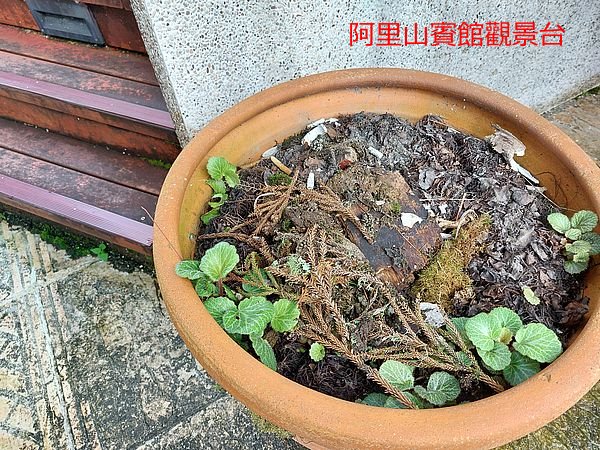 - 觀景台入口旁盆景狀似廢棄,無人照料,並有菸蒂與垃圾,予人沒有管理的觀感。