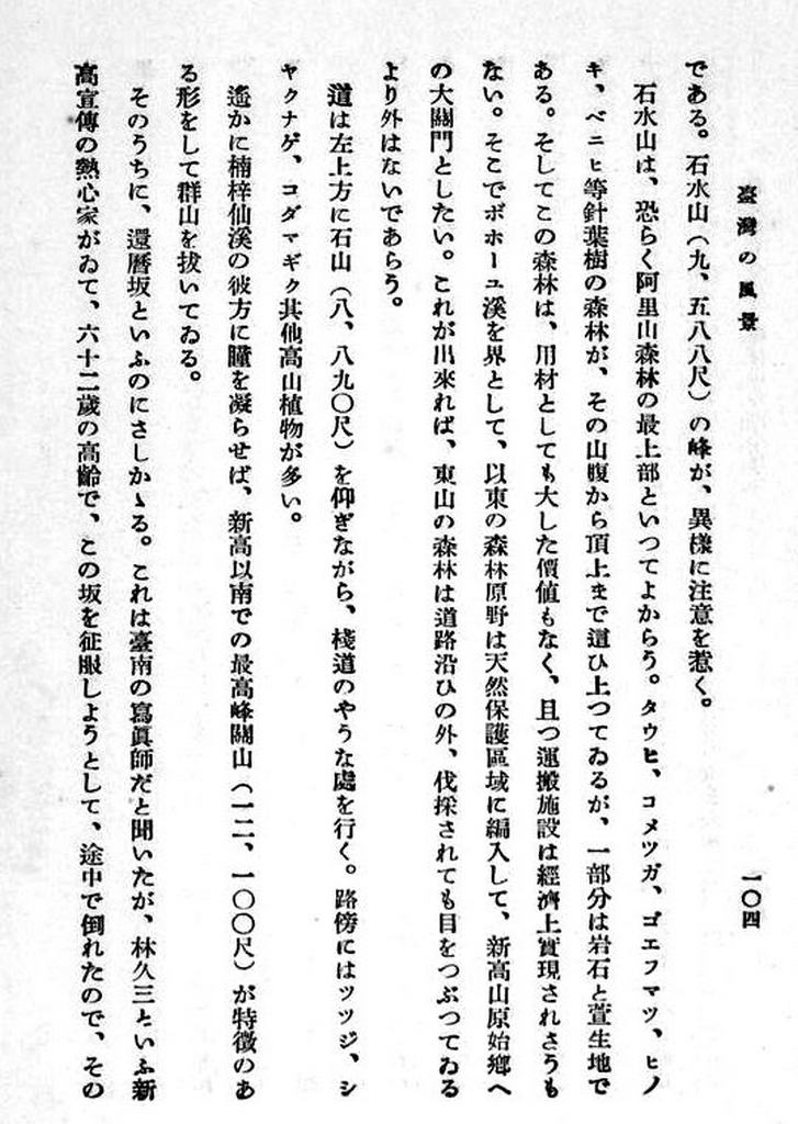 下圖:田村剛所著《臺灣の風景》第17章,介紹包括還曆坂等新高登山道路沿途地名之由來。