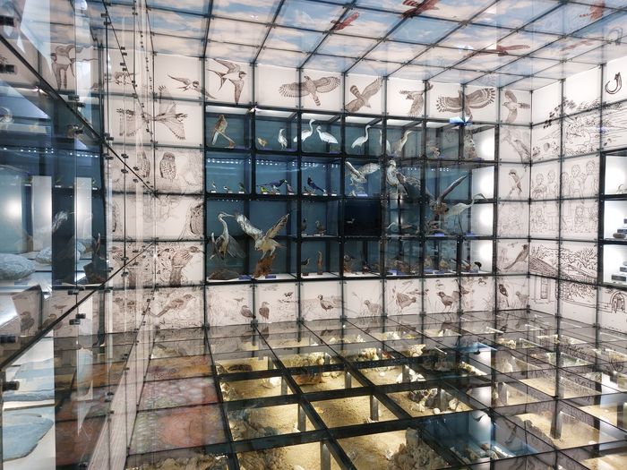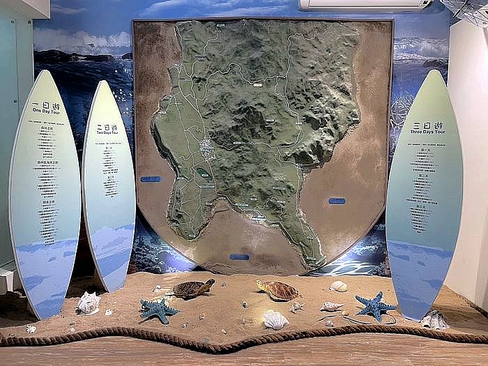 走完現場,可以體會到墾管處同仁與承包廠商投注的用心,其中還難能可貴的是將原本歸放在倉庫的陳年模型與標本(其中貝類與鳥類標本都超過40年)經整理後重新上架,在嶄新與搶眼的「玻璃盒」櫥窗設計下予人仔細觀賞的興致。而舊的平置立體地形模型,移到另一側並「豎」起來,搭配三塊衝浪板的遊程建議,不但延續原有展示,也增加地圖參照的功能,舊物新用,成功減廢又加分。種種巧思節省了新製經費,也賦予舊物再利用的新生命,是節省公帑及創新價值的範例。