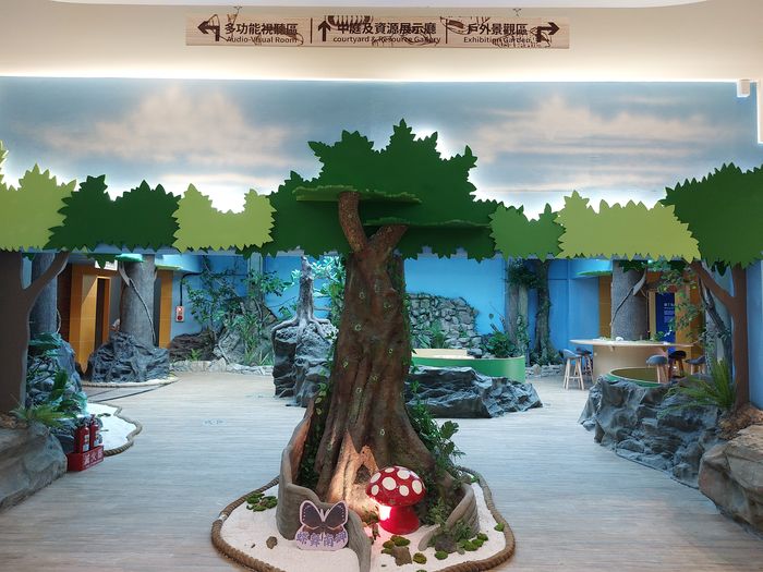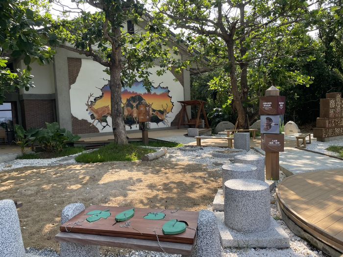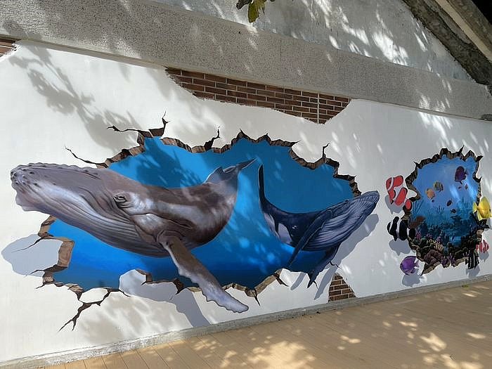 墾管處也利用這次改裝機會,將遊客中心旁一座戶外平台設置為「親子景觀休息區」,有多種互動設施,也將牆壁塗為3D立體生態彩繪,並有綠蔭植栽,是一處親子休憩的好地方。以下圖片由墾管處提供。