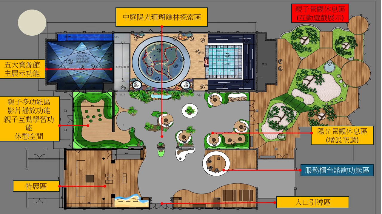 底下這張遊客中心展示規劃圖可以一覽整建後的空間分布與功能。