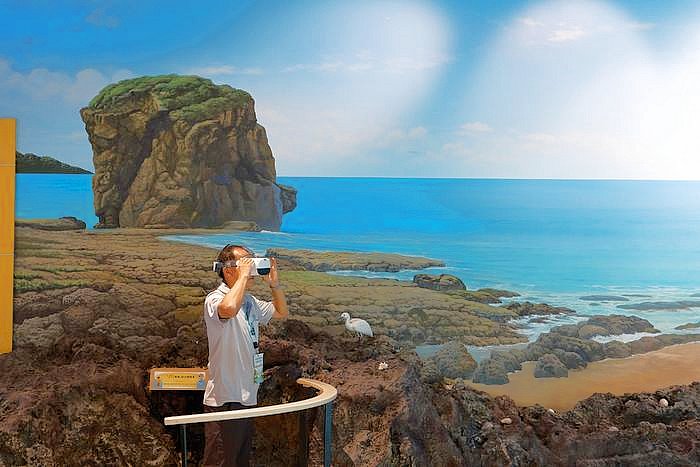 除了AR,遊客中心也有VR(虛擬實境)裝置,讓遊客徜徉飛行版的墾丁之旅。VR內容是空拍墾丁國家公園美景,有2個節目,一個是海域,一個是陸域,循環播放,一般大概看個3-5分鐘。為便於管理,須到服務台登記使用。