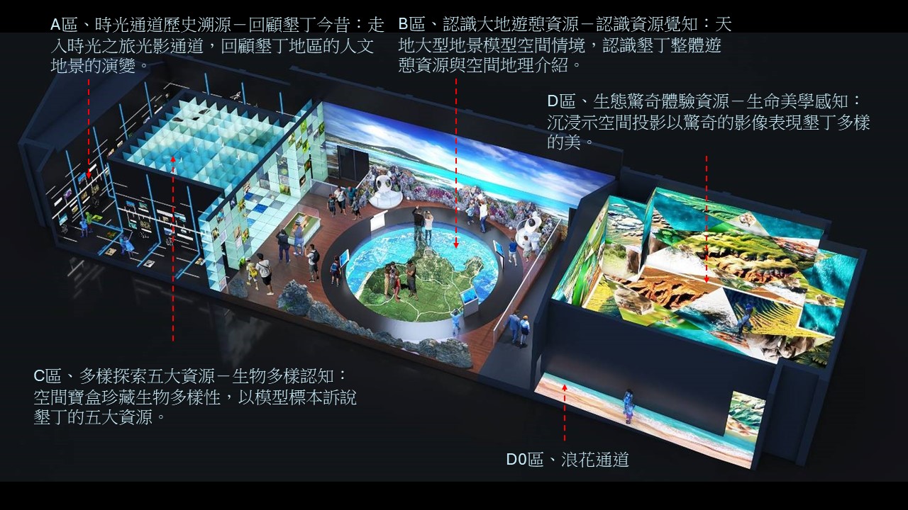 現在又多了一好「趣」處,就是翻新後於2025(民國114)年12月23日開放的墾丁國家公園遊客中心。遊客中心(常設展)歷經4次展示更新,大約每10年更新一次。這次內裝面貌一改以往多為靜態的展示內容與方式,其動線規劃、視覺震撼、光影變化、展示設計、科技應用、遊戲體驗、互動手法等在在讓人有耳目一新、驚艷連連之感!